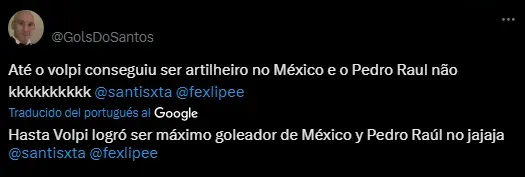 Por otra parte, hubo un dardito para un conocido de la casa en los ‘Diablos Rojos’. “Tiene más goles en Toluca que Pedro Raúl” y “Hasta Volpi logró ser máximo goleador de México y Pedro Raúl no”, apuntaron los simpatizantes brasileños, en referencia al delantero que en el último mercado Toluca vendió al Corinthians.