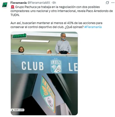 De acuerdo con Paco Arredondo de TUDN, en medio de esta locura se ha confirmado que hay un par de compradores que desean al Club León, uno de ellos sería nacional y otro internacional. De esta manera, en cuanto terminen las negociaciones no habría vuelta atrás y León dejaría de formar parte de Grupo Pachuca.