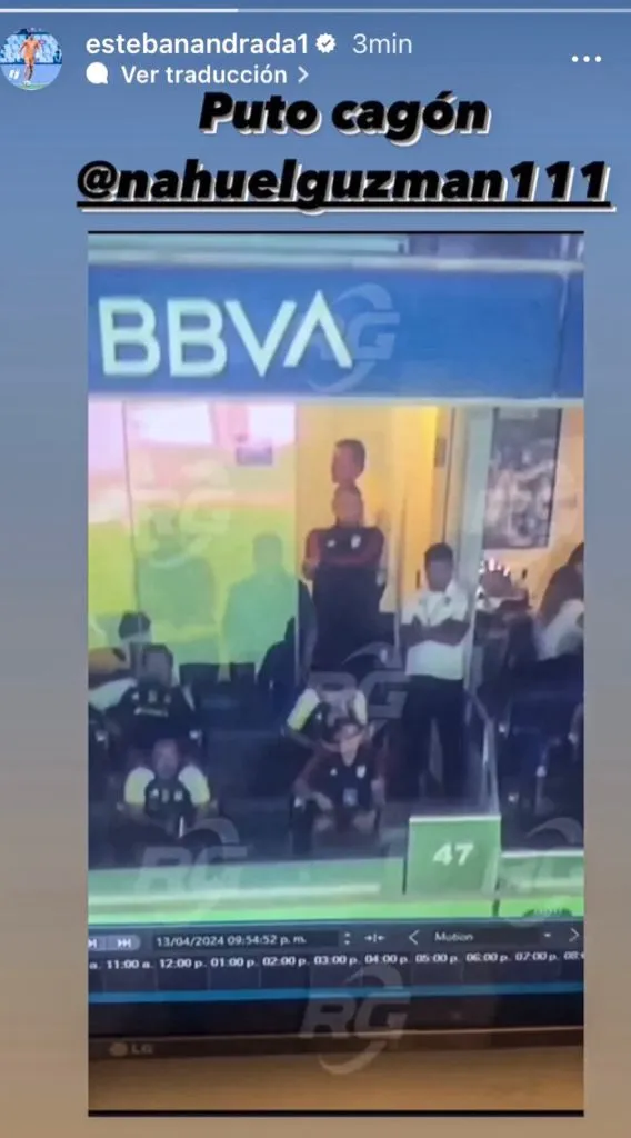 Al recibir la grabación, el guardameta de Rayados se llenó de ira y subió un posteo en su cuenta de Instagram: “P*to cag*n”, publicó Esteban Andrada con la foto del video donde se observa a Nahuel Guzmán apuntando con el láser, y etiquetó al propio portero de los Universitarios.