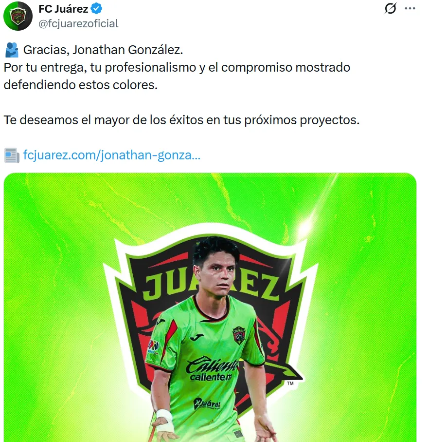 También se confirmó la salida de Jonathan González y Dieter Villalpando. Sobre González, el club expresó: “Gracias, Jonathan González. Por tu entrega, tu profesionalismo y el compromiso mostrado defendiendo estos colores. Te deseamos el mayor de los éxitos en tus próximos proyectos”.