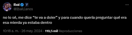 “Jodido en un hospital mexicano, me acaban de pinchar en el culo y no puedo ni sentarme; no vuelvo a tomar picante en mi puta vida, paradme si me veis haciéndolo”, publicó Llanos en un tweet por medio de su cuenta de la red social ‘X’, que generó de inmediato interacciones entre quienes deseaban cruzarlo en el Azteca este domingo.