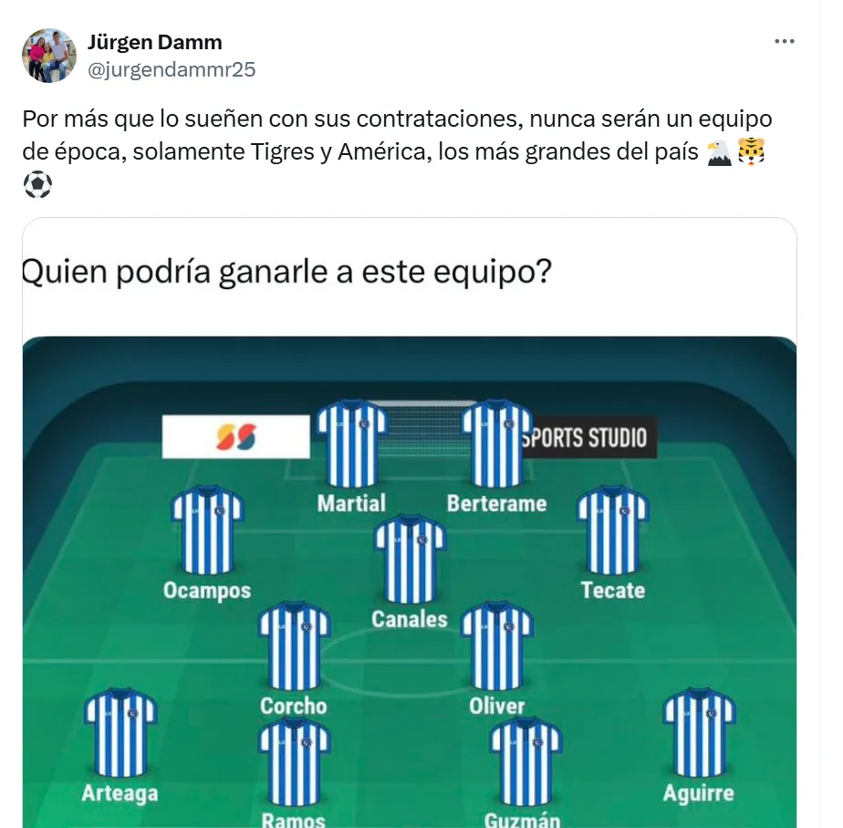 El jugador dejó un polémico mensaje en su cuenta de X para burlarse de los regios y encendió la polémica: “Por más que lo sueñen con sus contrataciones, nunca serán un equipo de época, solamente Tigres y América, los más grandes del país”.