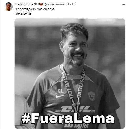 Gustavo Lema fue el más señalado por la afición como el principal responsable de la derrota de Pumas. La mayoría le critica al DT argentino la alineación titular que colocó contra Cruz Azul y sus muestras de inexperiencia.