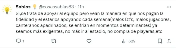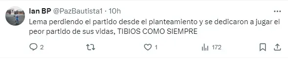 Luego de Gustavo Lema no hubo otro protagonista que haya recibido más críticas que otro de forma notoria. En general, los aficionados puntualizaron que ellos llenaron el estadio y que después el equipo no les respondió como creen merecer por tanto apoyo.