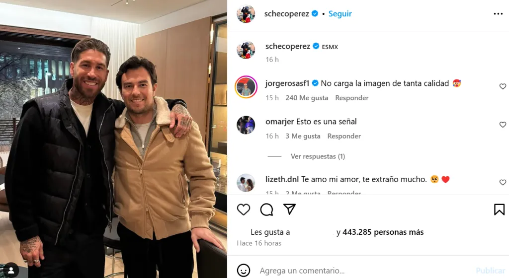 Tras confirmarse la noticia de que Sergio Ramos será flamante refuerzo de Rayados de Monterrey, Checo Pérez publicó una fotografía junto al defensor en su cuenta de Instagram y solo se limitó a poner una bandera de España y otra de México en la publicación. Dicho posteo ya tiene más de 440 mil likes en menos de 24 horas y todo apunta a que seguirá subiendo con el correr de los minutos.