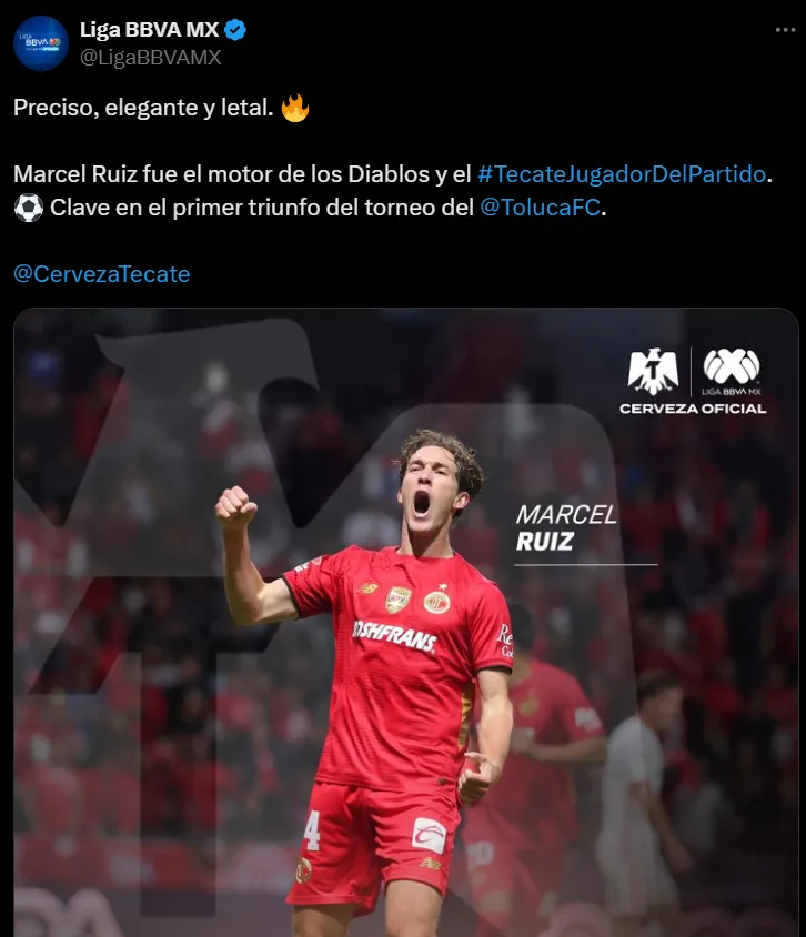 Si el partido terminó en victoria fue gracias a una de sus grandes figuras, Marcel Ruiz. El mediocampista tuvo otra actuación sobresaliente dado que se destacó con un gol y una asistencia, siendo así la gran figura del campo de juego. Su nivel tiene anonadado a todos, ya que lo que está mostrando tanto en los Diablos Rojos como en la Selección Mexicana es enorme.