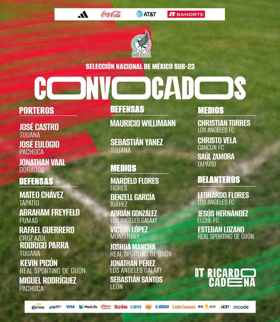 La lista de convocados del Tri Sub-23 para el ciclo: