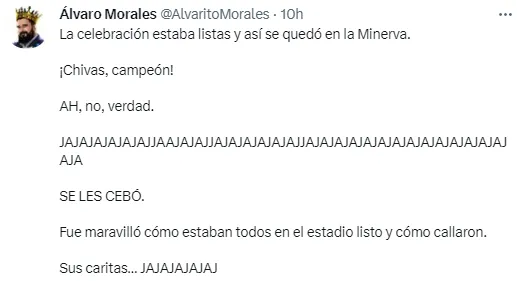 Las burlas de Álvaro Morales a Chivas por perder la final