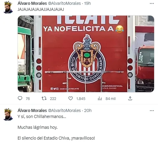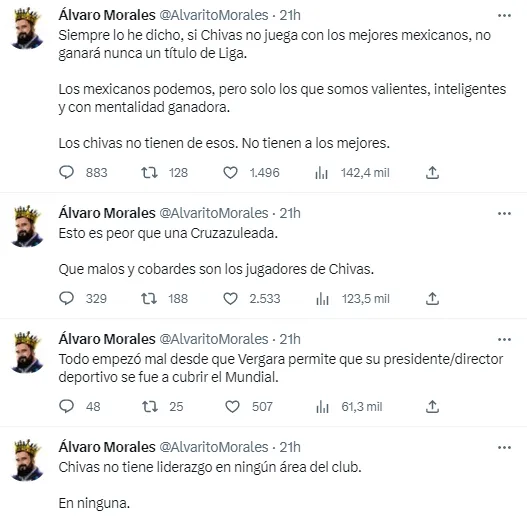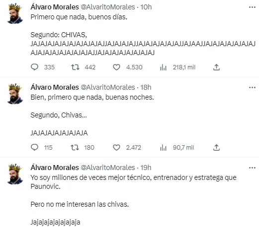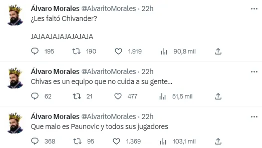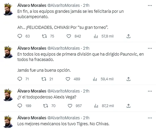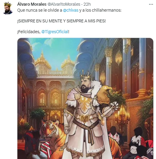 Este domingo, Tigres UANL sacudió al futbol mexicano con su remontada ante las Chivas de Guadalajara en la cancha del Estadio Akron, la cual lo llevó a bordarse el octavo título de Liga MX en su historia. Como era de esperar, esto fue tomado por Álvaro Morales para deleitarse en las redes sociales, aunque no solo con el Rebaño Sagrado.