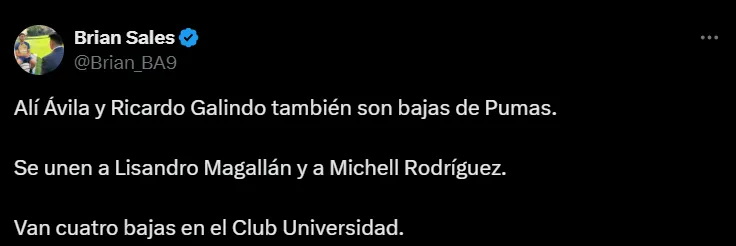 Ahora, según reveló el periodista Brian Sales, se suman dos nombres más a la lista de bajas: Alí Ávila y Ricardo Galindo. Ambos jugadores también dejarán la institución para la siguiente campaña. La renovación del equipo ya está en marcha.