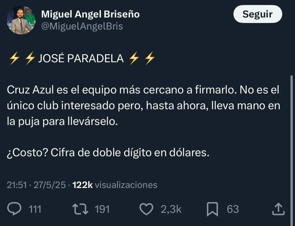 Según informó el periodista Miguel Ángel Briseño, Cruz Azul es el club que más avanzado tiene su interés por el volante argentino y ya se encuentra en negociaciones para tratar de cerrar su llegada. No será una operación sencilla, pero en La Noria están dispuestos a hacer un esfuerzo económico importante para quedarse con el jugador