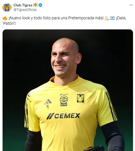 En este sentido, Nahuel Guzmán aprovechó el comienzo de la pretemporada para aparecer con un nuevo look: el portero de Guzmán se rasuró todo el pelo. Tigres compartió una foto del Patón en redes sociales y los aficionados llenaron de comentarios la publicación.