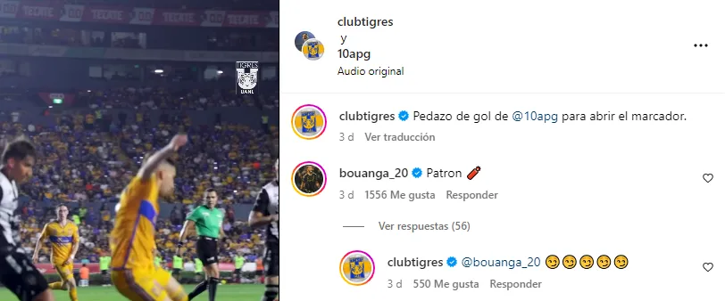“Patrón”, comentó el atacante franco-gabonés en la publicación de Tigres UANL. Por supuesto, los aficionados rápidamente notaron esta respuesta, y se llenaron de ilusión con poder ver al hoy hombre de LAFC vistiendo la camiseta de los de la UANL en un futuro.