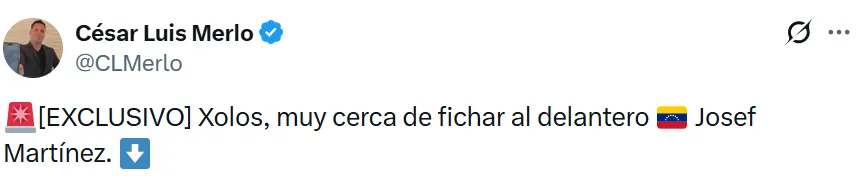 Según lo que informó el periodista César Luis Merlo en Súper Deportiva, Josef Martínez está a detalles de convertirse en nuevo refuerzo de Xolos de Tijuana. El delantero venezolano llegaría en condición de agente libre tras su paso por el San Jose Earthquakes de la MLS, en una operación que sería un golpe fuerte para el mercado mexicano.