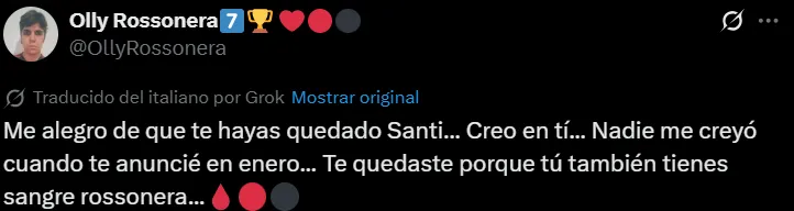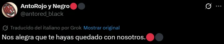 El delantero de 24 años anunció la noticia a través de un mensaje en su cuenta personal de X (ex Twiter). Con apenas dos emojis, un corazón negro y otro rojo, emulando los colores de la playera de Milan, el surgido en Cruz Azul dio a entender que su futuro estará en el mismo club por el cual fichó en febrero de este año desde Feyenoord.