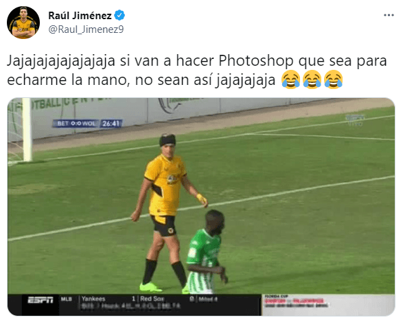 “Jajajajajajajajaja si van a hacer Photoshop que sea para echarme la mano, no sean así jajajajaja”, escribió Raúl Jiménez mientras compartió la foto en cuestión, correspondiente a la transmisión de ESPN. Asimismo, varios seguidores del goleador aparecieron para compartir imágenes en donde se lo ve totalmente en forma.