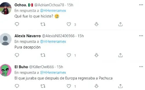 En las redes sociales, en cambio, fueron muchos los mexicanos que se mostraron decepcionados con la decisión del futbolista que muy probablemente representará nuevamente a México en una Copa del Mundo. Fue en respuesta a un posteo que publicó el propio HH, con el lema “Estoy aquí, Houston!