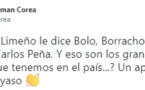“El técnico de Limeño le dice bolo, borracho, HDP a mi compañeroCarlos Peña. ¿Y esos son los gran técnicos nacionales que tenemos en el país? Un aplauso para usted don payaso”, sentenció el delantero salvadoreño en defensa del mexicano, quien en 2019 reconoció de manera pública haber tenido problemas con el alcohol.