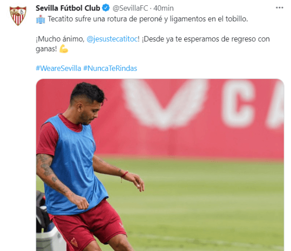 El futbolista Jesús Tecatito Corona sufrió una desafortunada lesión este jueves que lo dejaráfuera de toda posibilidad de disputar el Mundial de Qatar con la Selección de México. Según informó Sevilla a través de un comunicado oficial, tuvo una rotura de peroné y ligamentos del tobillo izquierdo.