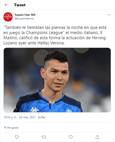 Ante este flojo desempeño, el extremo mexicano fue fuertemente criticado por el Diario II Matino. “También le tiemblan las piernas la noche en que está en juego laChampions League”, escribieron en primera instancia contra el jugador del Tri.