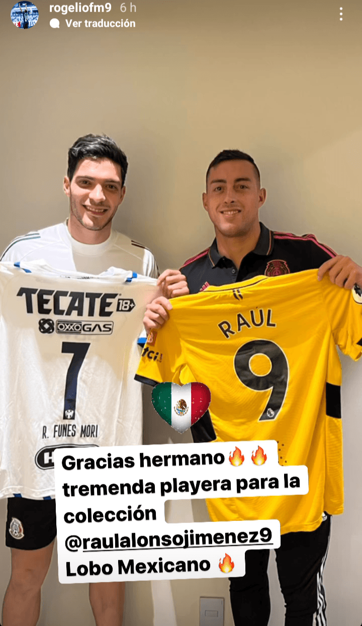 Mientras los futbolistas mexicanos realizan sus trabajos de preparación, dos competidores en su posición aprovecharon para realizar un peculiar intercambio de playeras: se trata de los goleadoresRogelio Funes Mori y Raúl Jiménez, este último out de los encuentros debido a complicaciones musculares.