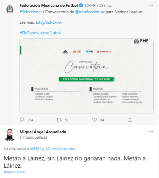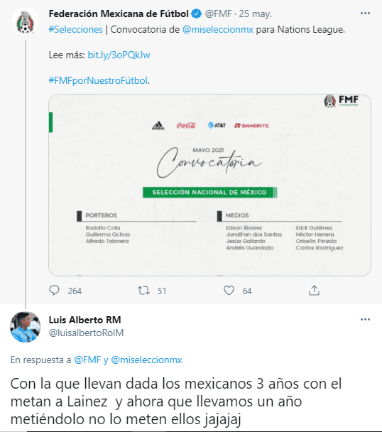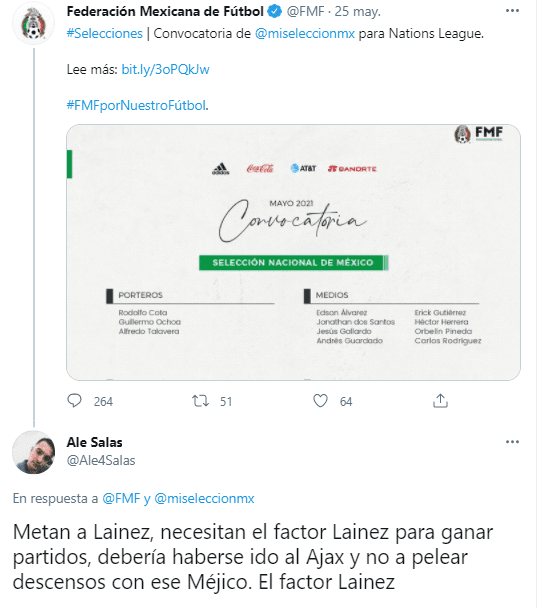 En esos tiempos, se gestó una frase en las redes sociales que los mexicanos utilizaban con frecuencia para recriminarle al cuadro español: “Metan a Lainez”. Así, inundaban de comentarios cada publicación para hacerles saber su enojo.