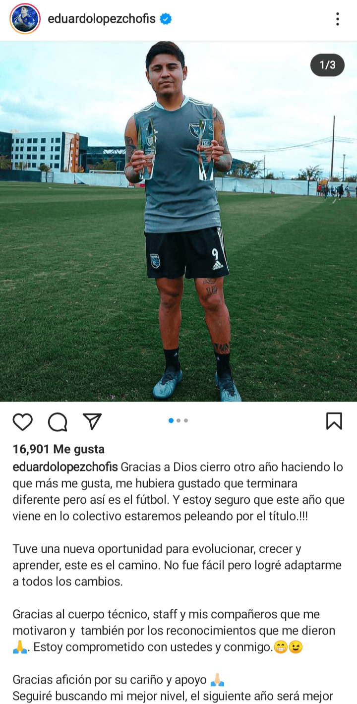 En las últimas horas, y a modo de conclusión de cierre de temporada, López escribió un largo y jugoso mensaje a través de su cuenta de Instagram, en el que expresó públicamente el compromiso con su actual equipo y dio a entender que en la siguiente temporada continuará defendiendo esa playera, ya que habló de ‘pelear el título el próximo año’.