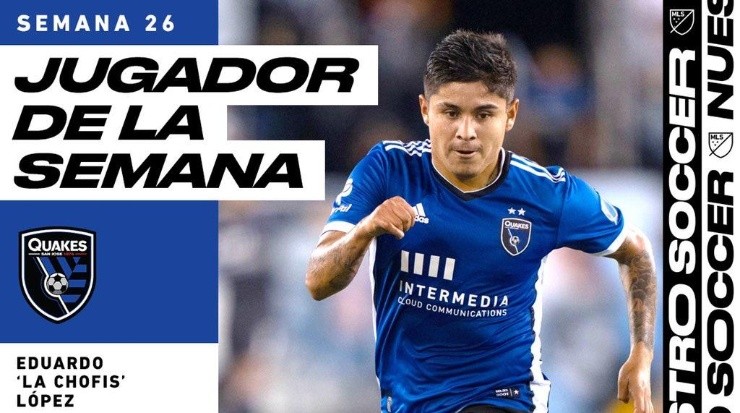 Eduardo ‘Chofis’ López está viviendo sus últimos tiempos de ensueño con el San José Earthquakes, habiéndose convertido ya en una pieza fundamental del equipo. Un claro reflejo de ello fue lo acontecido este lunes: fue destacadocomo el Mejor Jugador de la Semana 26 de la temporada regular de la Major League Soccer (MLS).