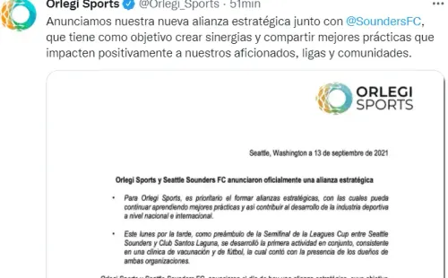 Comunicado de Orlegi Sports sobre la alianza con Seattle Sounders