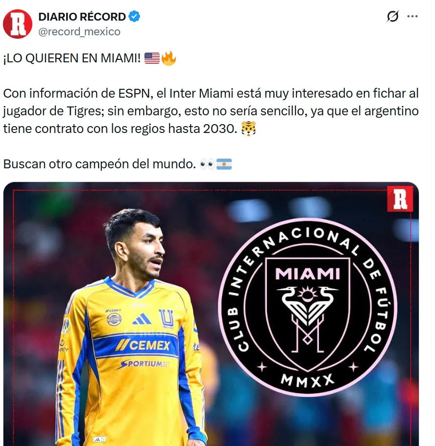 DAZN reveló que el contrato de Ángel Correa con Tigres rondaría los 4 millones de dólares brutos por temporada. Esta sería la cifra mínima que Inter Miami tendría que ofrecer para hacerse con los servicios del delantero que si lo tientan podría aceptar la misma.