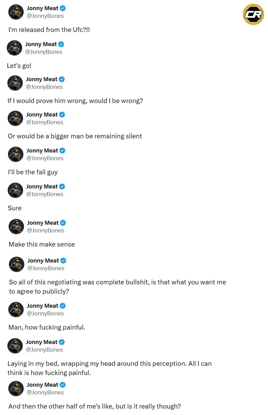 “Así que toda esta negociación fue una completa tontería. ¿Es eso lo que quieres que acepte públicamente? ¡Qué dolor! Estar en la cama, asimilando esta percepción.”, escribió Jones en su cuenta de X, aunque luego borró los mensajes.