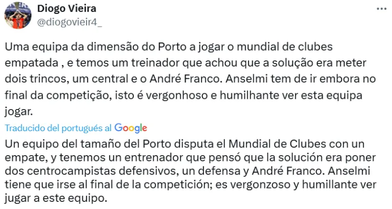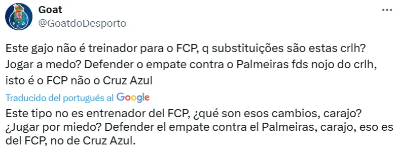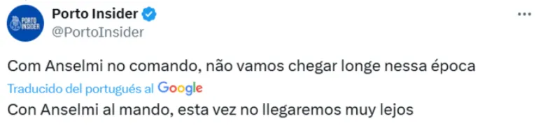 Así, se pudieron leer comentarios tales como: “Con Anselmi al mando, no vamos a llegar lejos”, “fuera Anselmi”, “Se va sonriendo como si el empate estuviese bien”, “Se tiene que ir cuando termine la competencia” y “esto es Porto, no Cruz Azul”.