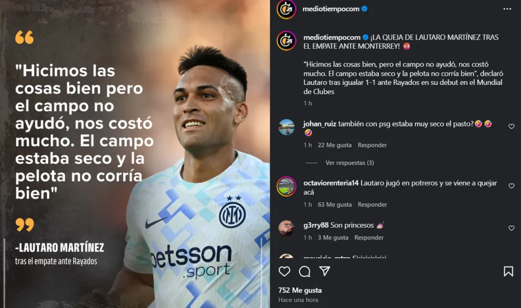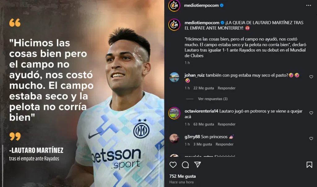 El autor del gol del equipo europeo fue Lautaro Martínez, capitán y figura de los neroazurris, que habló tras el empate y dejó una frase que sorprendió a muchos, ya que sonó a excusa para justificar el flojo rendimiento que tuvo el Inter ante los regios.