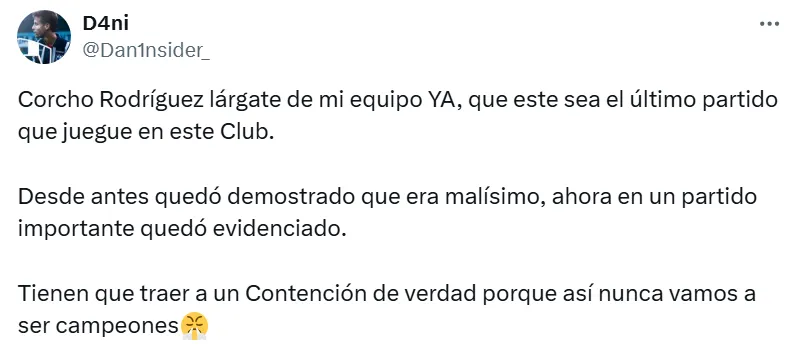 Las críticas de los aficionados de Rayados contra Corcho Rodríguez en redes sociales