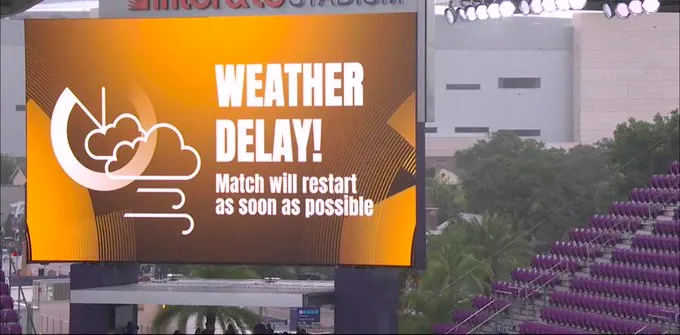 Todos los partidos que se suspendieron por alerta metereológica en el Mundial de Clubes 2025 se reanudaron el mismo día al cabo de varios minutos. Este caso no fue la excepción, pero demoró más de la cuenta debido a que la lluvia torrencial sí se hizo presente en el estadio.