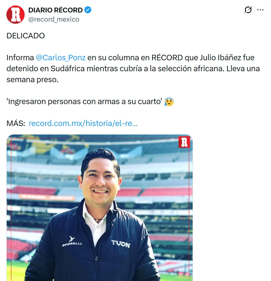 - El periodista Julio Ibáñez de TUDN fue interceptado por personas armadas en Sudáfrica.