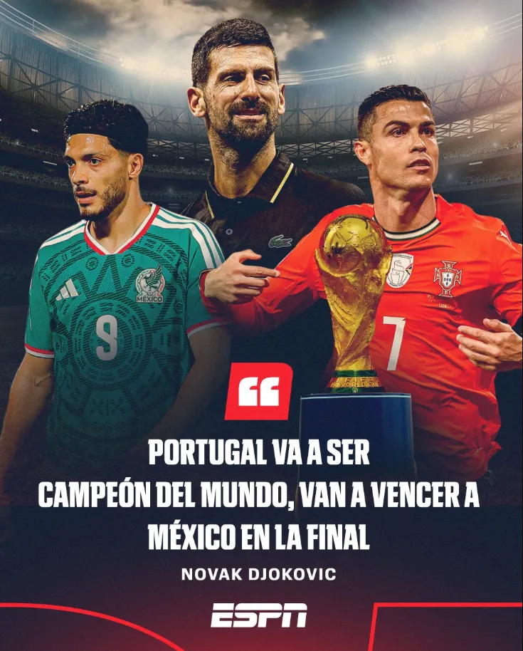 - El tenista serbio pronosticó que Portugal vencerá a México en la Final del próximo Mundial.