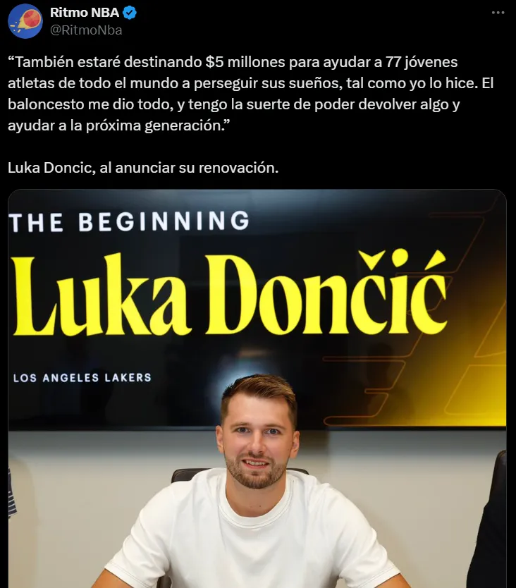 Más allá de las cifras impresionantes que involucra el acuerdo, lo más destacado fue la actitud del propio Doncic fuera de la cancha. El esloveno demostró una vez más que su grandeza no pasa solo por lo que hace dentro del campo de juego, sino también por el impacto que quiere dejar en los demás.