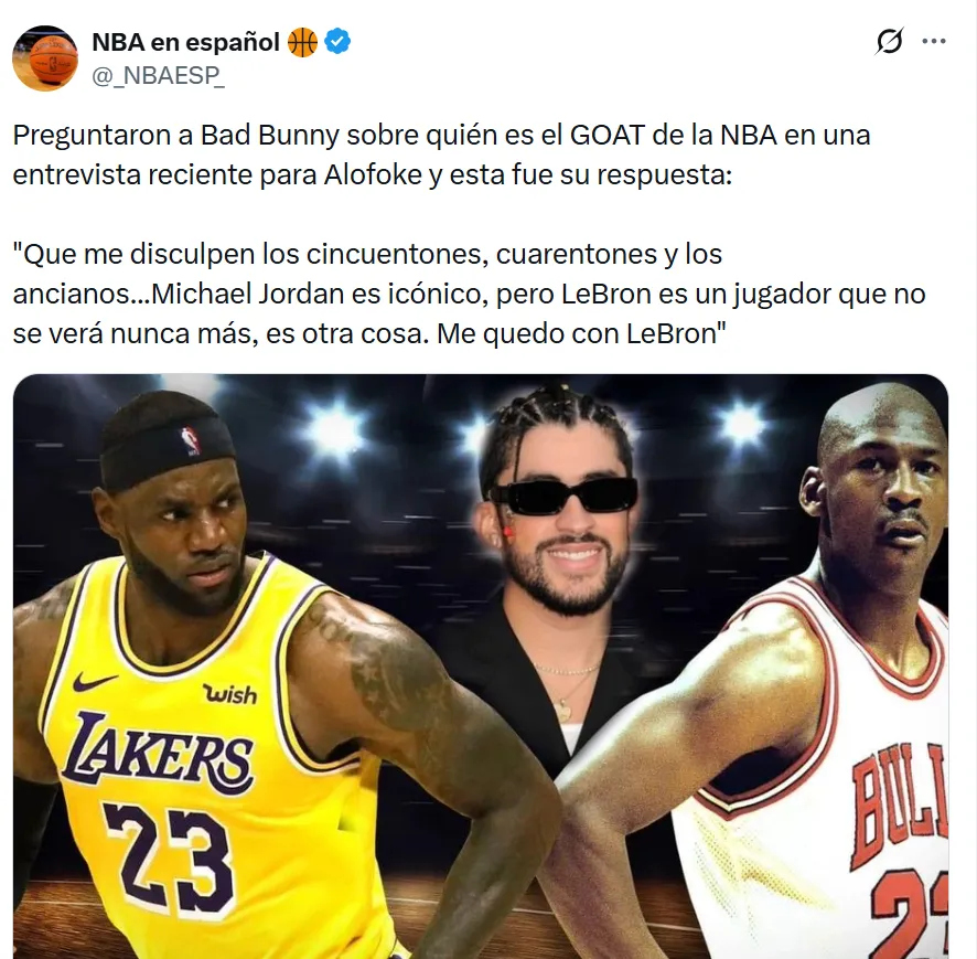 - Bad Bunny eligió a LeBron James como el mejor jugador sobre Michael Jordan.