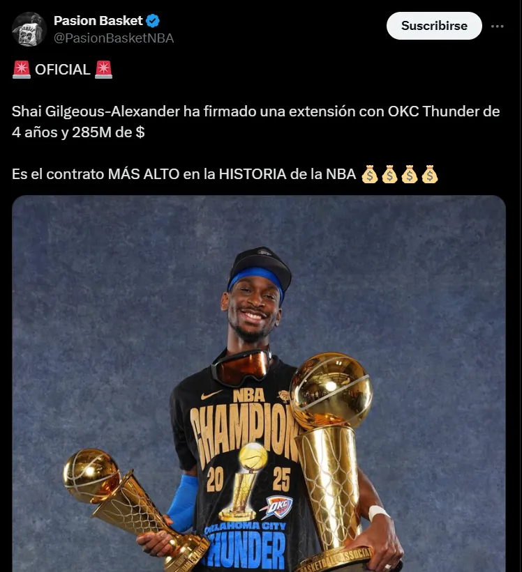 Esta renovación es un claro mensaje de Thunder para el futuro. Confían plenamente en Shai para liderar al equipo y mantener la competitividad tras ganar el campeonato recientemente. Es una apuesta fuerte para asegurarse la continuidad de su estrella.