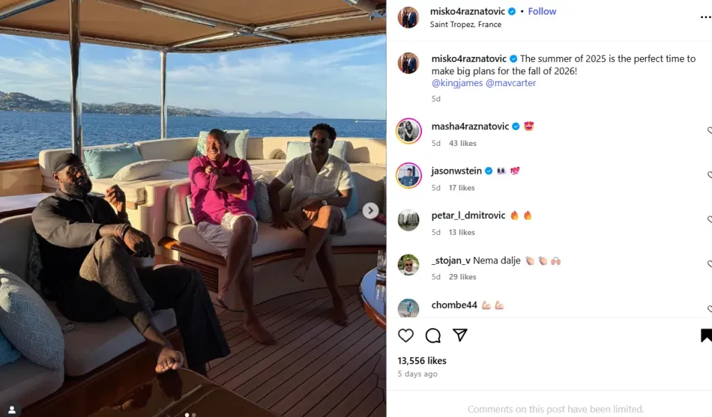 Para ser más precisos, el agente de Jokic –Misko Raznatovic– publicó una foto en redes sociales junto a LeBron James y Maverick Carter (socio de LJ) en un yate, acompañado del texto: “¡El verano de 2025 es el momento perfecto para hacer grandes planes para el otoño de 2026!”. Tomando en cuenta la experiencia de Raznatovic en el medio, muchos tomaron este mensaje como una pista de lo que podría ser un cambio de aires para Jokic rumbo a los Lakers.