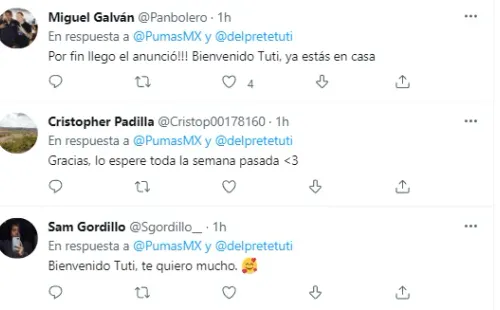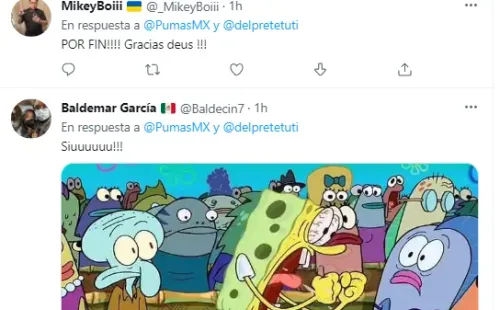 Y es que entre los fanáticos de Pumas se sucedieron los mensajes de cariño, los deseos de buena suerte, las expresiones de felicidad por la confirmación. También hubo lugar para algunos memes ocurrentes. Pero sorpresivemente, porque se sabe el nivel de crítica al que acostumbran los aficionados mexicanos, casi no se vieron mensajes negativos o de desconfianza.