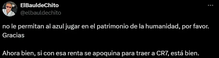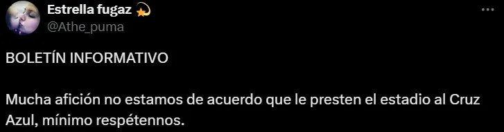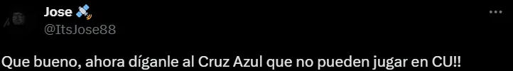 “Díganle a Cruz Azul que no puede jugar en el CU”, “muchos aficionados no estamos de acuerdo que le presten el estadio a Cruz Azul” y “confirmen que el estadio no se presta ni se renta”, fueron algunos de los mensajes que dejaron los fanáticos auriazules en redes sociales. En tanto, uno de ellos bromeó con la idea de utilizar el dinero que dejará La Máquina en concepto de renta para fichar a Cristiano Ronaldo.