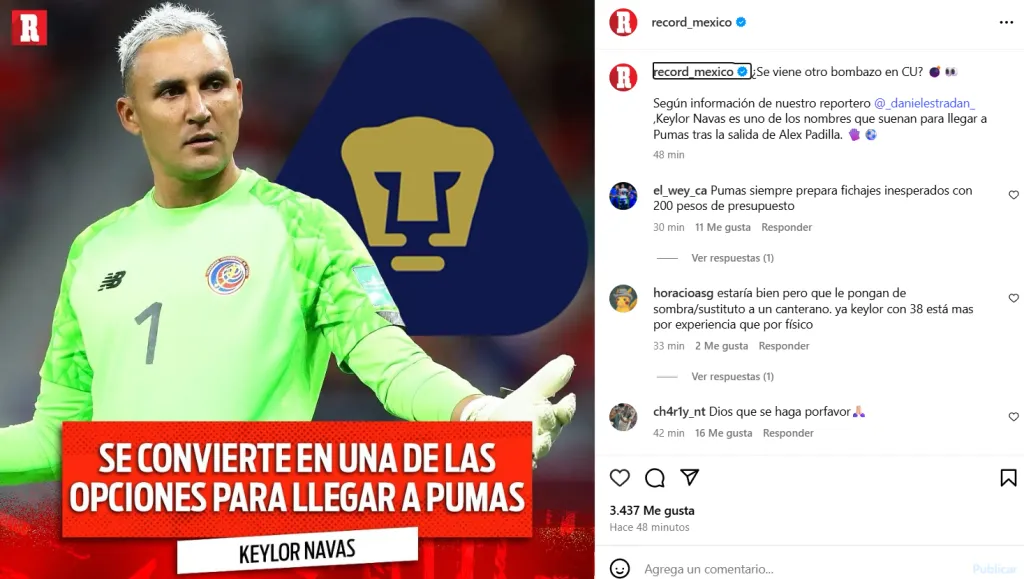 Según informó el reportero de Récord, Daniel Estrada, Keylor Navas es uno de los nombres que suena para reforzar el arco de Pumas para la próxima temporada. El multicampeón con Real Madrid, que brilló en Europa y ganó títulos inolvidables, actualmente juega en Newell’s de Argentina.