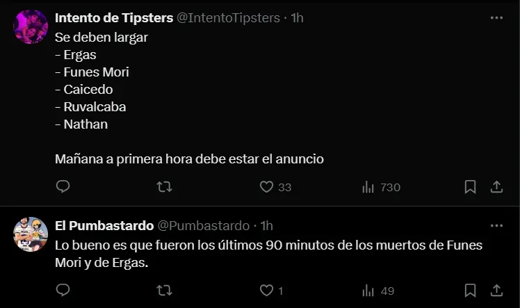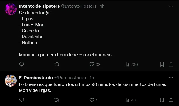 Los principales señalados fueron varios jugadores que hoy son parte de la plantilla, siendo Rogelio Funes Mori uno de los más nombrados en los posteos. Jorge Ruvalcaba, Piero Quispe, Robert Ergas y José Caicedo también estuvieron entre los más mencionados.
