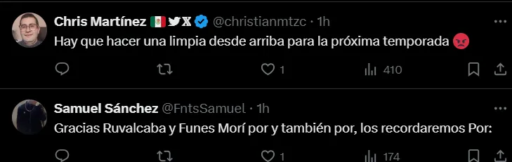 El equipo no logró sobreponer y no hizo pie en el partido. Primero sintió el golpe de Germán Berterame, luego la expulsión de Jorge Ruvalcaba y todo se terminó con la anotación de Nelson Deossa sobre el final del cotejo. Luego del partido, la afición del equipo se descargó en ‘X’.