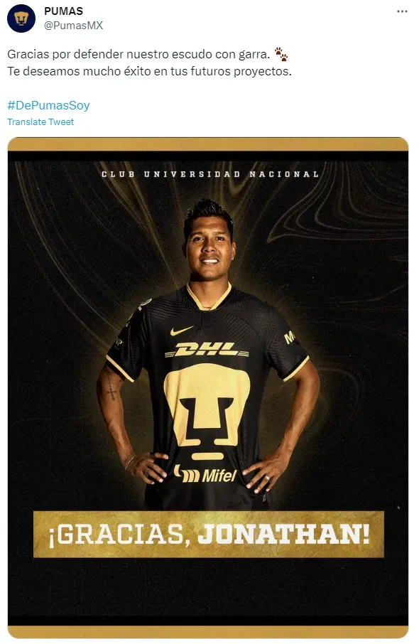 A través de las redes sociales del club escribieron: “Gracias por defender nuestro escudo con garra.Te deseamos mucho éxito en tus futuros proyectos”. A su vez, Rodrigo Celorio había informado que el exAtlante hacía varios días que había dejado la concentración de Pumas, por lo que ahora deberá buscar un nuevo club.