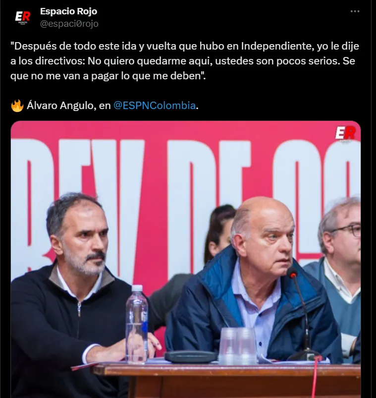 El lateral habló con ESPN Colombia en las últimas horas y no se guardó nada. Apuntó directamente contra la dirigencia de Independiente, criticando el manejo interno del club y la forma en la que tratan a varios futbolistas. Sus declaraciones encendieron la polémica y dejaron al descubierto lo que vivió en Argentina.