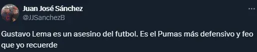 A su vez, y tal como sucede en prácticamente todos los partidos de Pumas UNAM, Gustavo Lema también recibió críticas. Si bien no fue el más cuestionado, el DT no se salvó de que los aficionados quedaran disconformes con el planteo del entrenador.