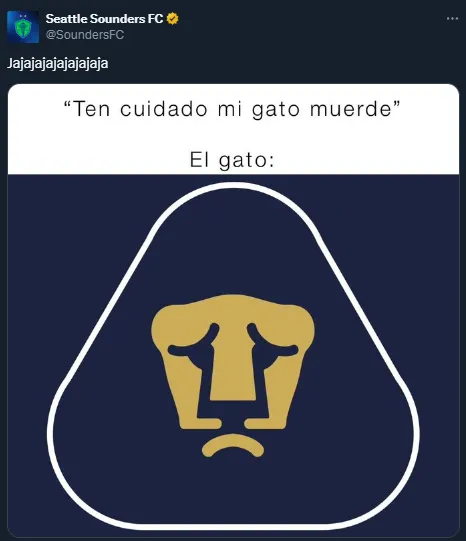 Sin embargo, la cosa no finalizó allí, sino que comenzaron los memes por parte de la cuenta de Sounders. Y como si no fuera suficiente, el conjunto de la MLS recordó la eliminación frente a Pumas UNAM en la final de la Concachampions de 2022.